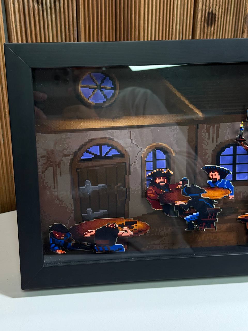 Sumérgete en el hilarante y entrañable mundo de The Secret of Monkey Island con nuestro diorama que recrea el icónico Scumm Bar, el famoso punto de encuentro de piratas y personajes excéntricos. Un homenaje perfecto a este clásico de aventuras gráficas, capturando su humor y estilo único.