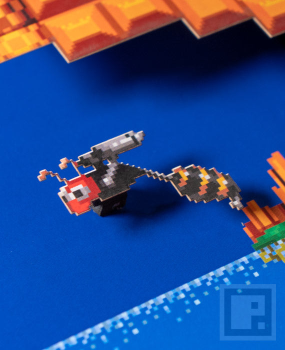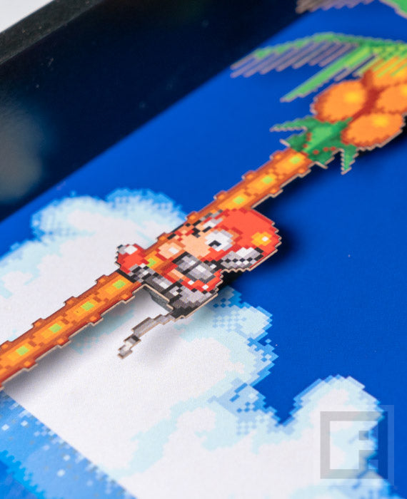 Chaque détail du niveau a été imprimé sur du papier photographique de haute qualité, découpé au laser avec précision et superposé à la main, créant un effet tridimensionnel réaliste qui donne vie et volume à la composition. Grâce à son cadre en boîte à ombre , ce tableau devient une pièce unique pour les collectionneurs et les passionnés de jeux rétro.
