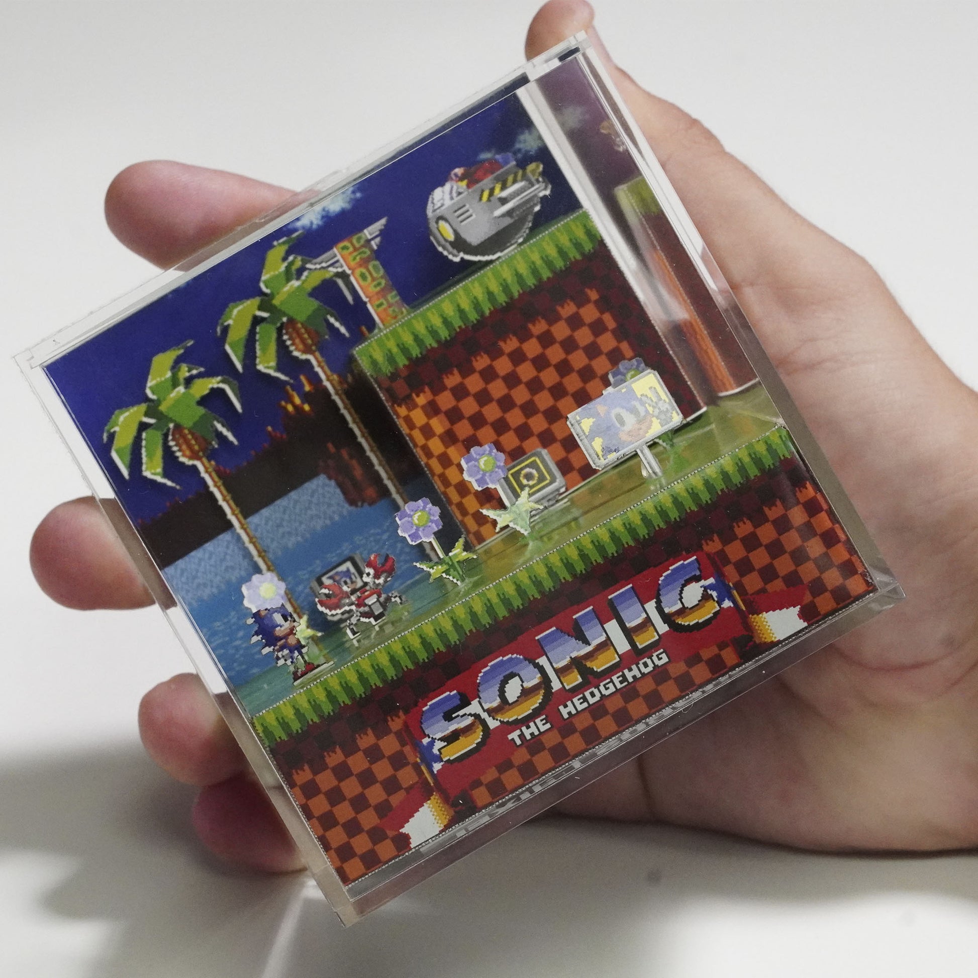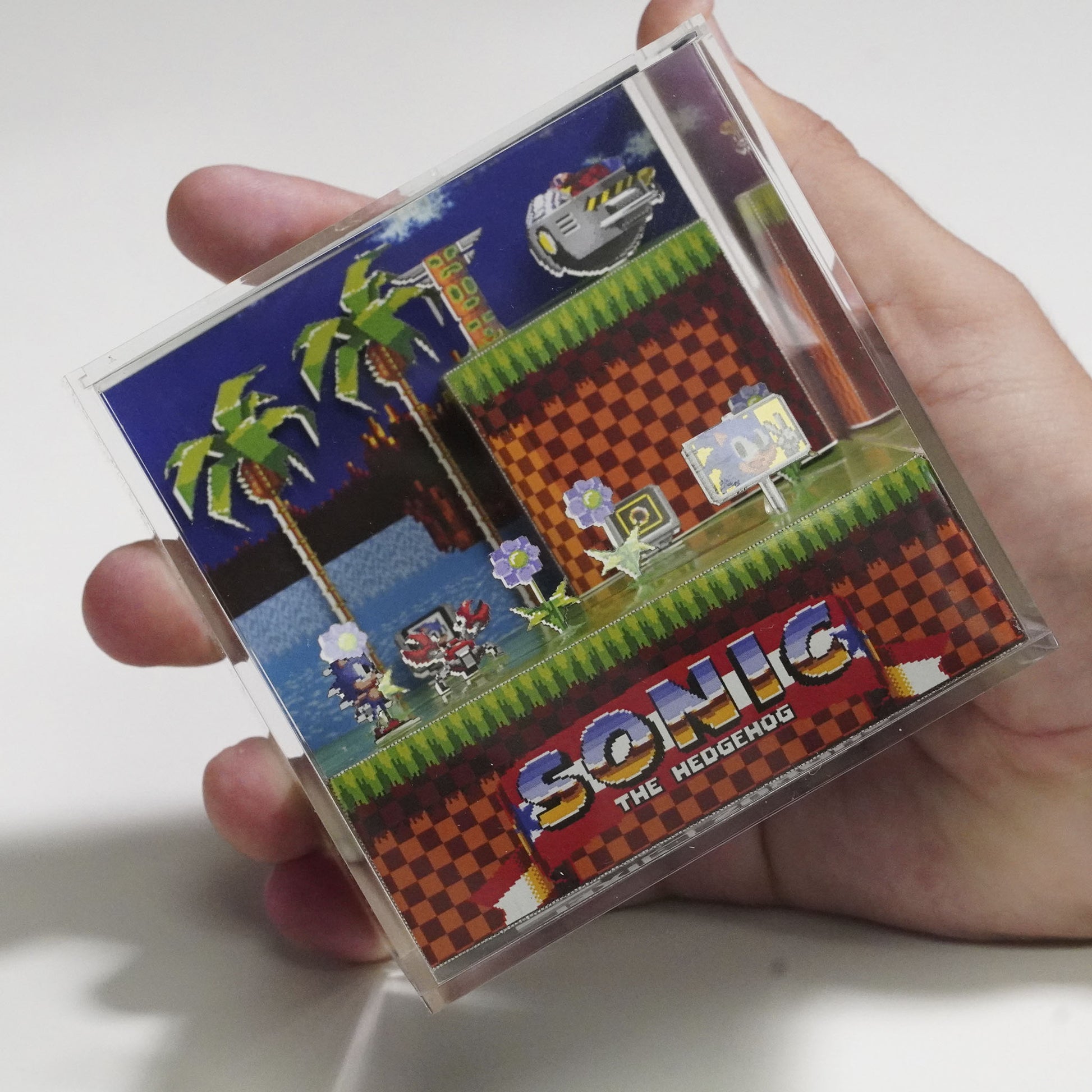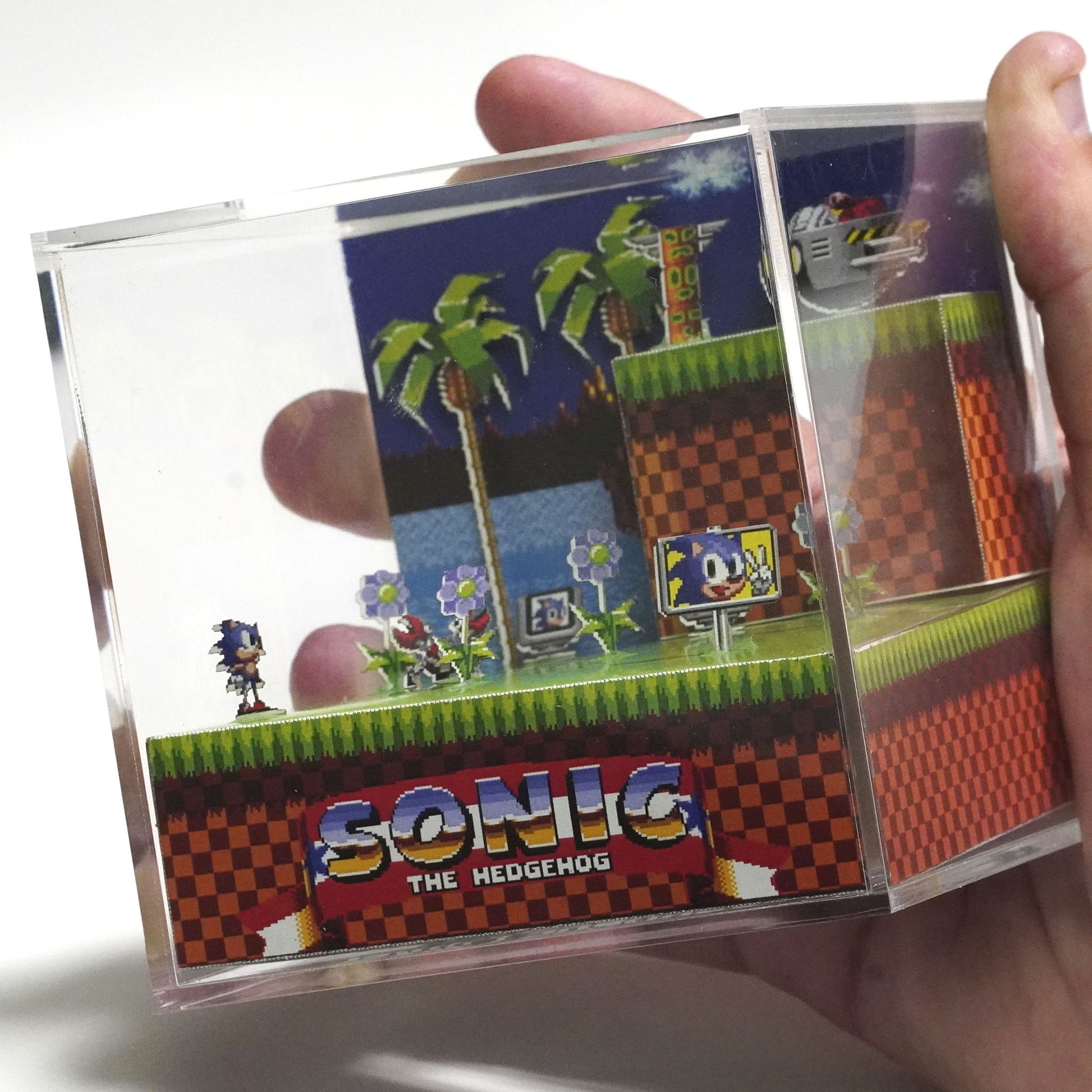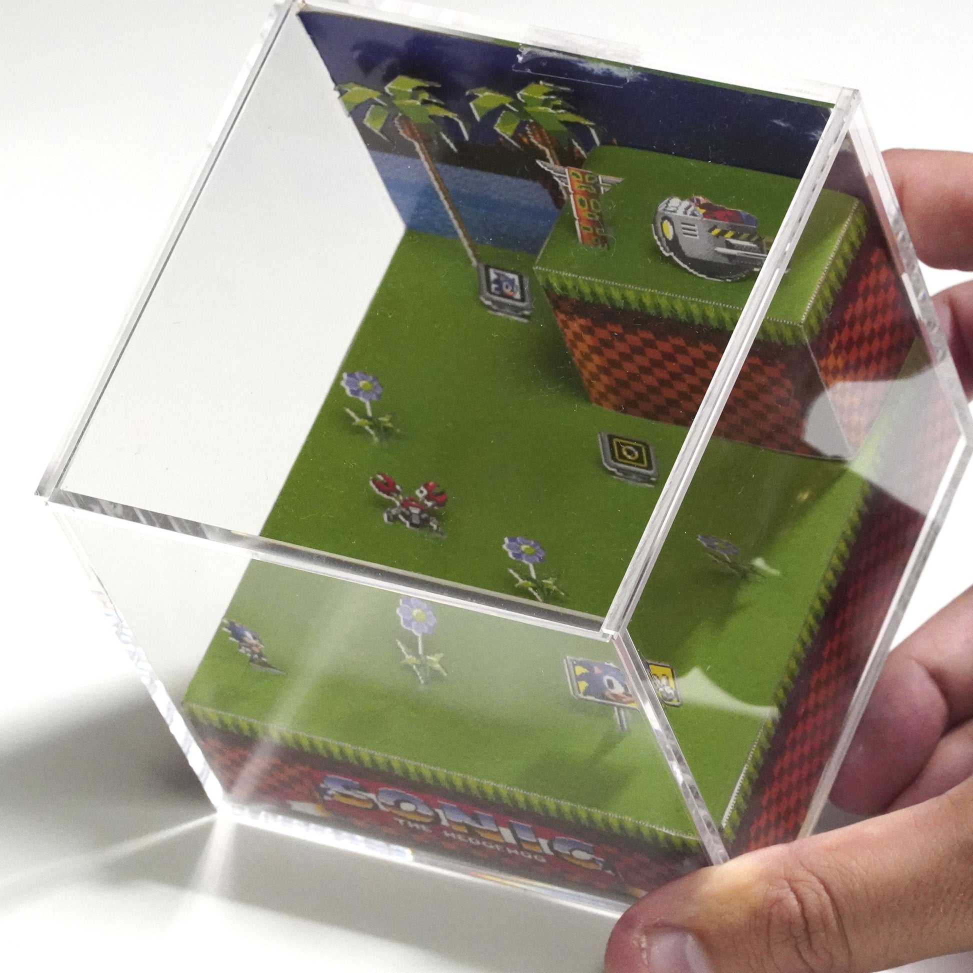 Cube 3D Sonic the Hedgehog. Cube de 10 centimètres, découpé au laser et assemblé à la main.