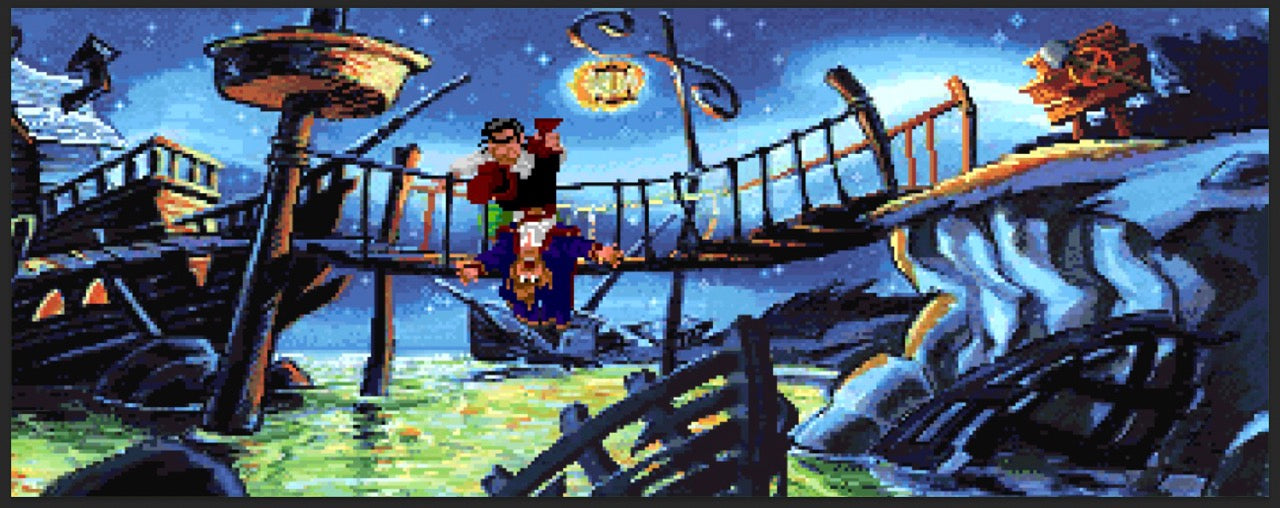 Tableau panoramique diorama - Monkey Island 2 : La revanche de LeChuck ( scène d'ouverture )