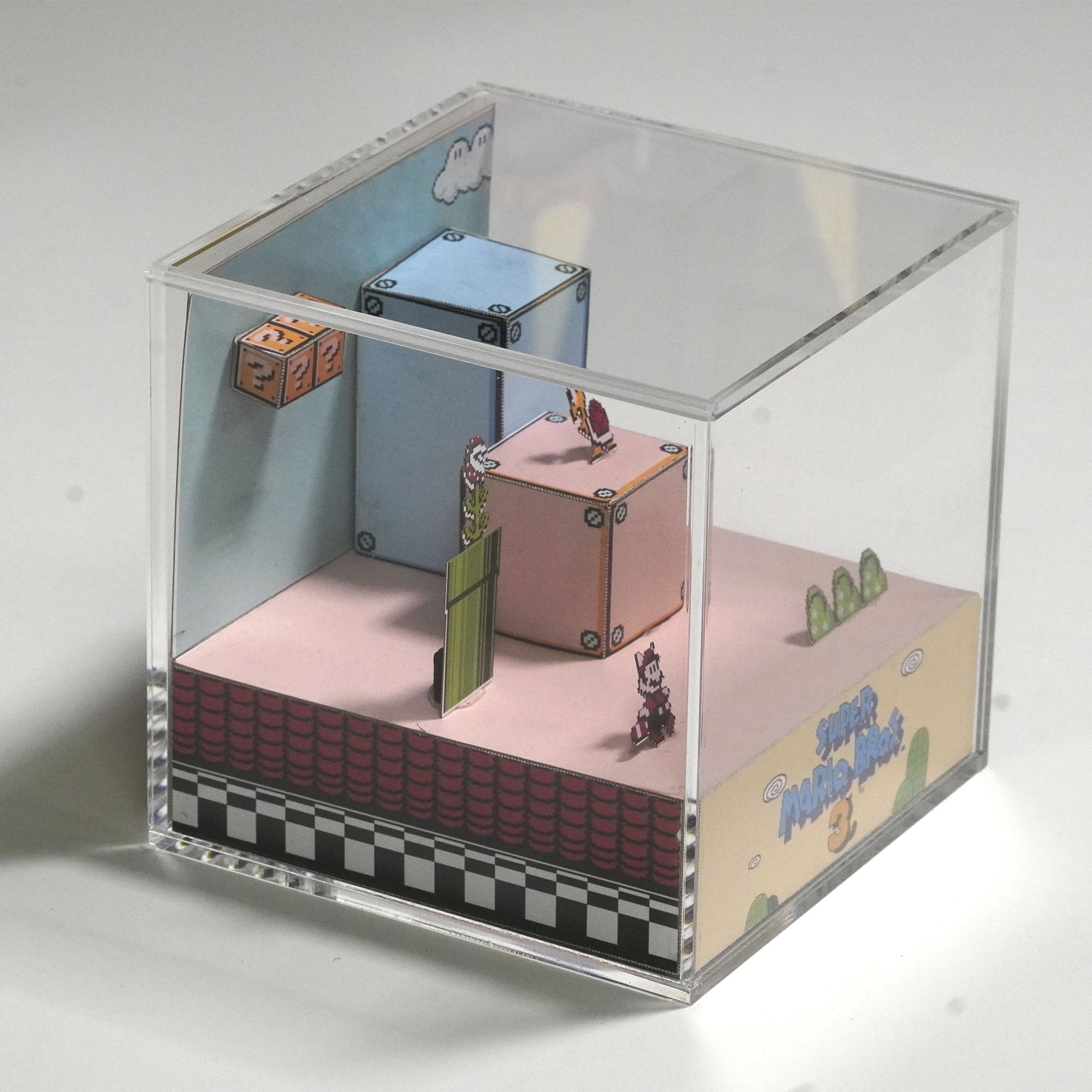 Cube du premier niveau de Super Mario Bros 3 en 3D avec des éléments cubiques.