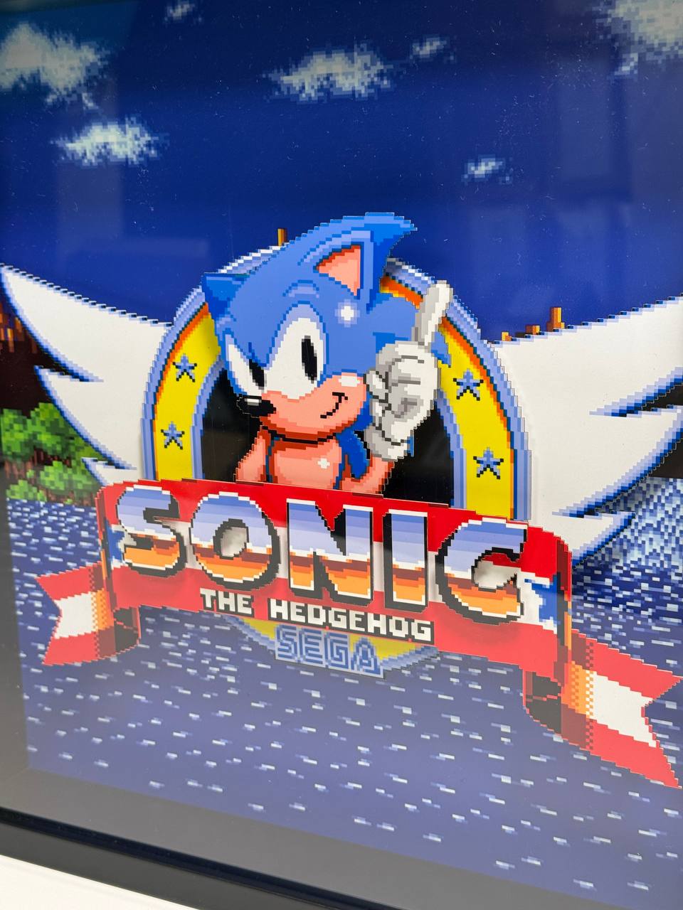 Corre a la velocidad de la luz con nuestro diorama de Sonic The Hedgehog, que captura al icónico erizo azul en la inconfundible animación de la intro de Mega Drive. Detalles vibrantes y diseño meticuloso hacen de este cuadro una pieza imprescindible para cualquier fan de Sega.