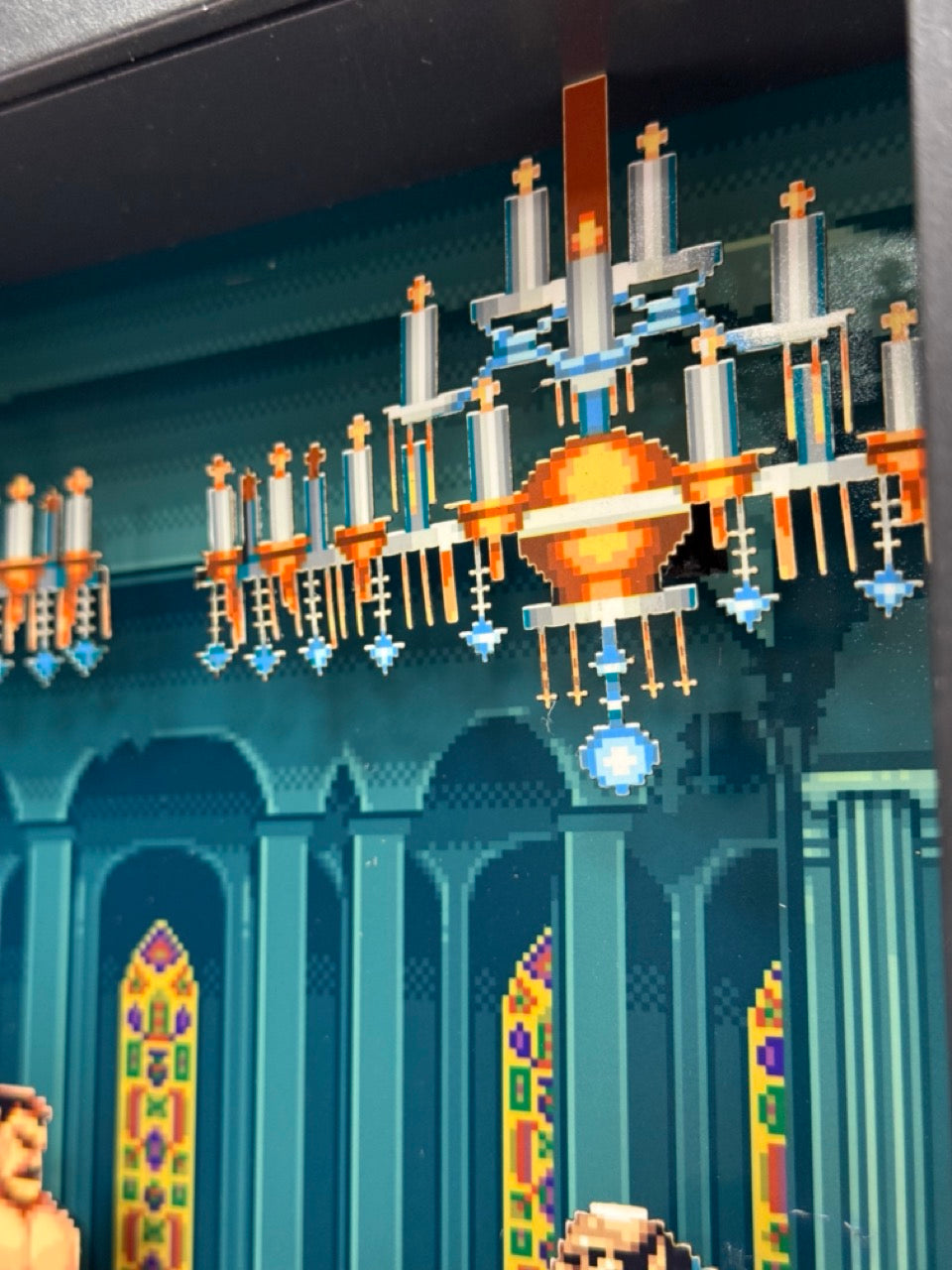 Cada elemento respeta el arte original del arcade, con un acabado en marco tipo shadow box que realza la escena y la protege. Una pieza imprescindible para cualquier amante de los beat ‘em up.
